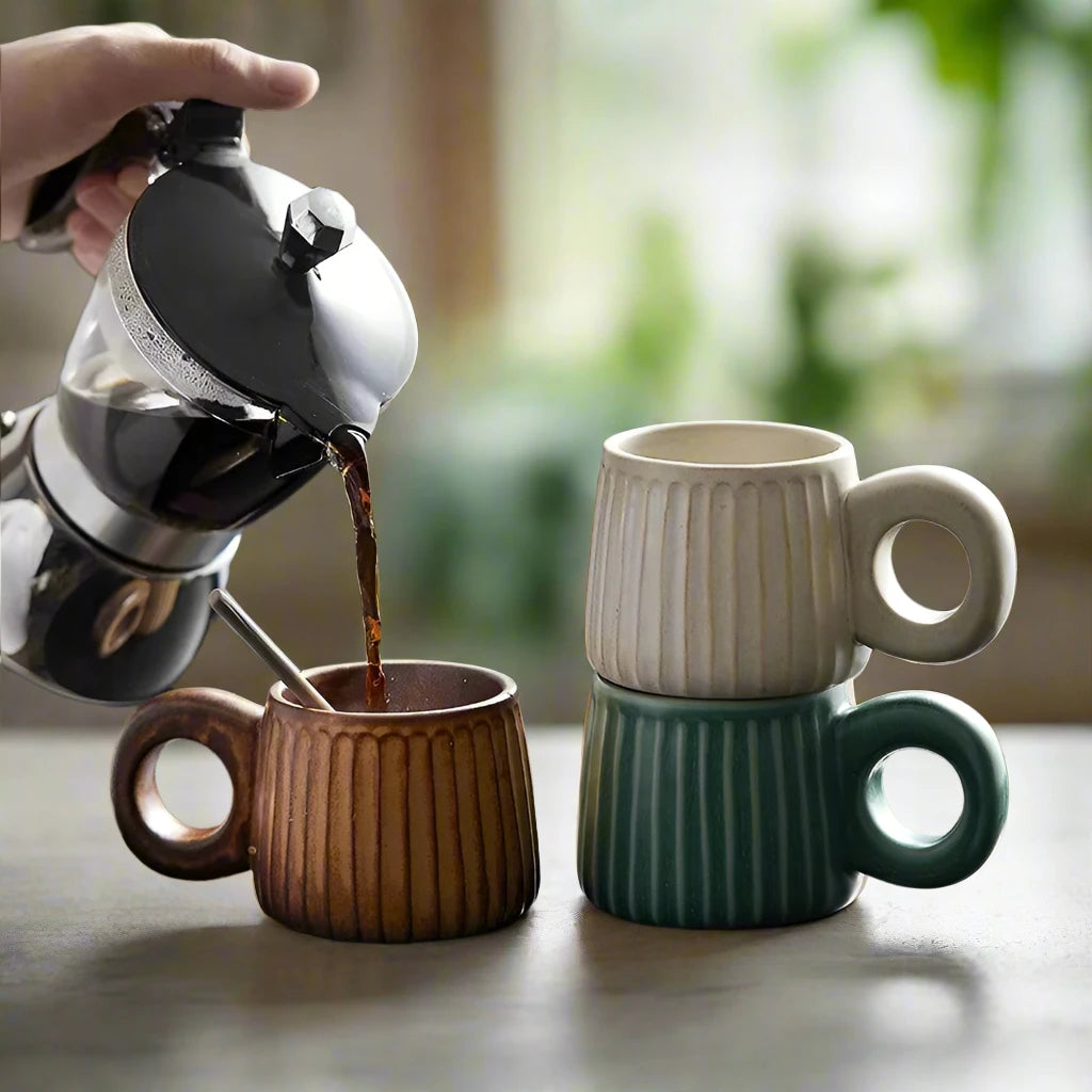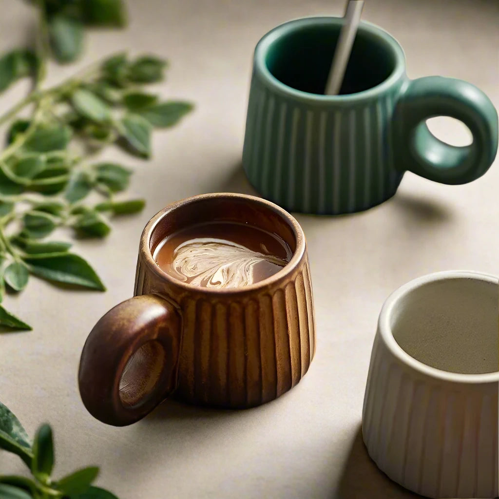 The Still Sip Mug has a capacity of 250ml, a size of 7*7cm, and is made of ceramic. The package includes 1 cup (spoon not included). Its design is simple and features a loop for easy handling.